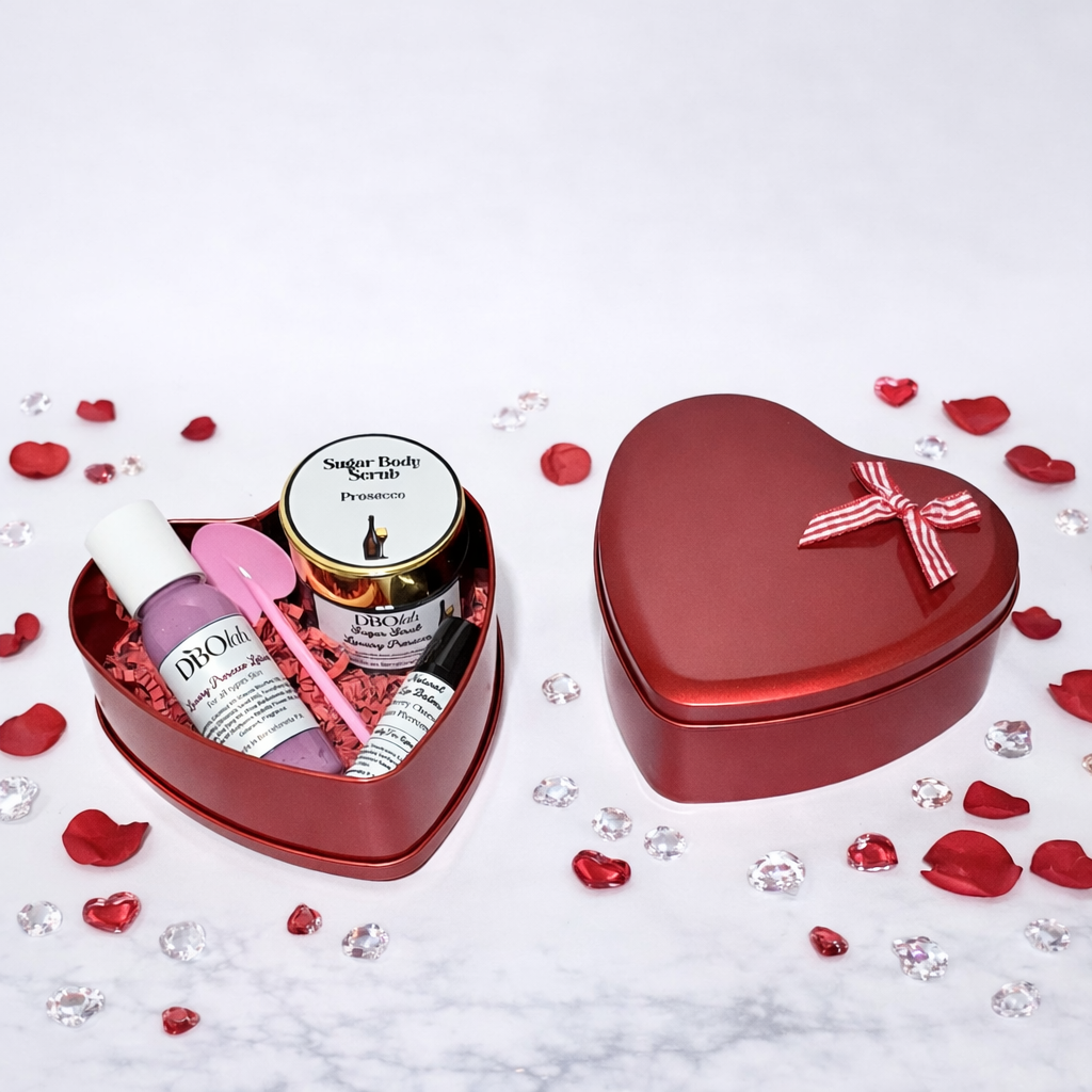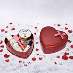 Todo presentado en una espectacular cajita de metal en forma de corazón, perfecta para regalar o para darte un merecido momento de autocuidado.